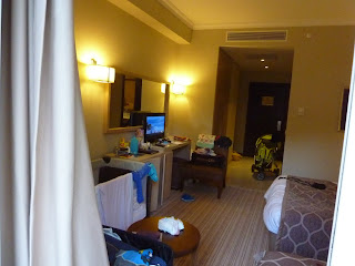 Pokoj byl moc pěkný. Sice jsme ho nemohli najít,protože jsme špatně přečetli číslo- místo 2177 jsme četli 2/77. Další zrada ,druhé patro je vlastně první (počítají i přízemí), způsobila,že mě zase nemohl najít Slávek s kufry :) Nakonec i postýlka byla, díky mé "brilantní aj".